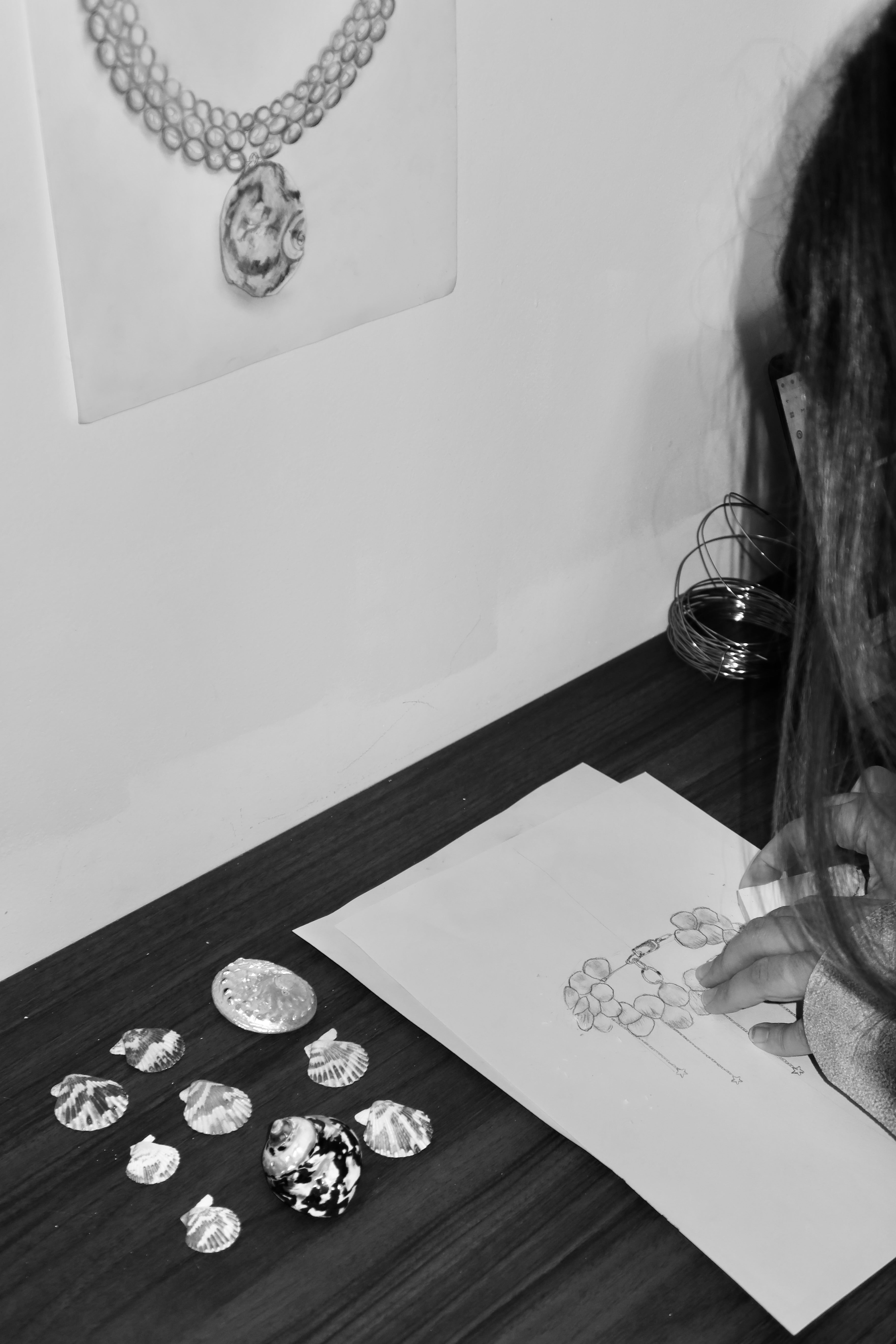 Nous collaborons avec des partenaires proches, passionnés par la matière vivante. Certains collectent des coquillages patinés par le temps, d’autres sélectionnent perles, nacres, dentelles ou tissus aux textures rares et chargées d’histoire.